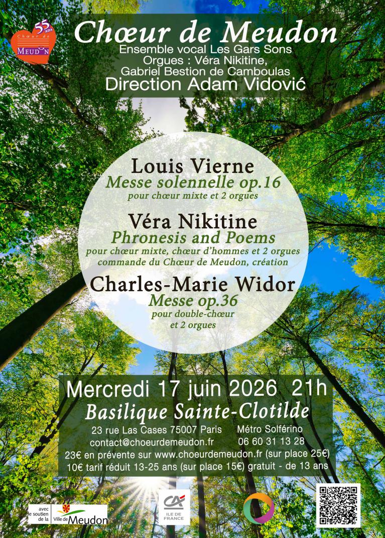 Mardi 2 juin 2026 21h à l'église du St Esprit de Meudon-la-forêt